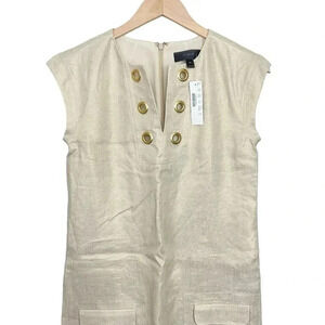 J. Crew Gold Foil Linen Dress Size 00 Grommets Cap Sleeve