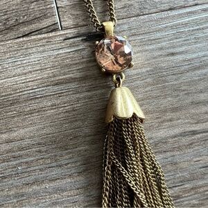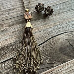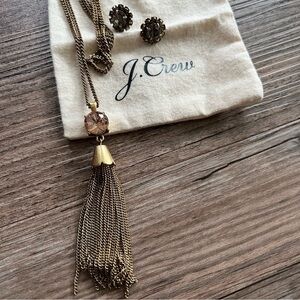 J. Crew Gold Gem Tassel Necklace & Stud Rhinestone Earring Set