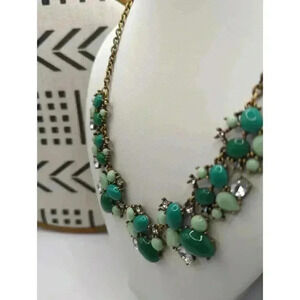 J Crew Gold Green Statement Necklace Beaded Rhinestone Chain Womens