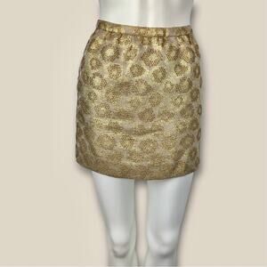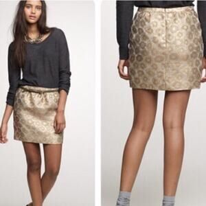 J. Crew Gold Metallic Mini Skirt Festive Size 2