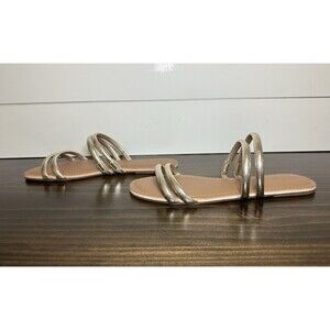 J. Crew Gold Metallic Strappy Slip On Flat Sandals Women's 9