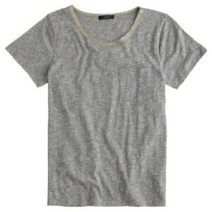 J Crew Gold Metallic Trim Crewneck T-Shirt Womens X-Small Grey Gold Basic Casual