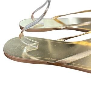 J Crew Gold Metallic Womens Leather Flats Thongs Flip Flops Slides Sandals sz 10