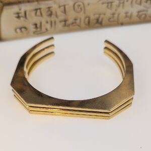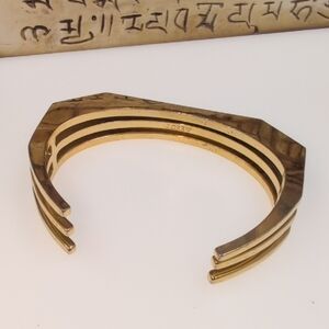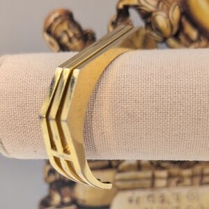 Embrace contemporary elegance with this J. Crew gold bracelet, showcasing a minimalist geometric design. Its smooth, polished finish and open cuff style offer a sophisticated touch to any ensemble.