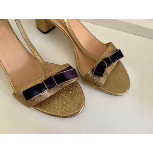 J. Crew gold & navy blue heels, size 9. Great condition. Leather upper & lining. Such beautiful shoes!