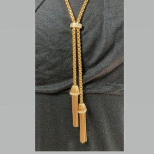 Elegant gold necklace with tassel design. Perfect for any occasion.