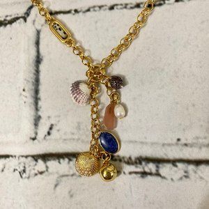 Add a little sparkle to your everyday (and beach days!) with this nautical-inspired stone, pearl and shell charm necklace. Feel-good fact: This style was made using eco-friendly recycled brass casting