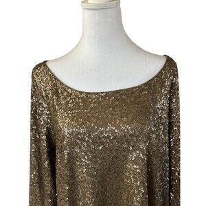 J Crew Gold Sequin Scoop Neck Long Sleeve Top Sz XL