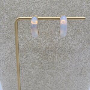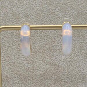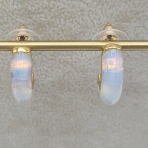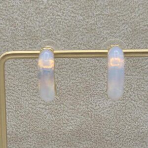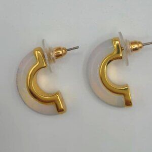 J Crew Gold Tone Jade Green 1/2 Hoop Stud Earrings NWOT!