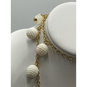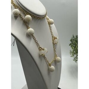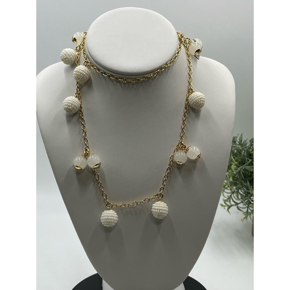 J. Crew Gold Tone White Beaded Beads and Whitish Orb Long Necklace New