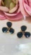 These elegant earrings feature a stunning blue flower design with a gold outline, perfect for adding a touch of sophistication to any outfit.