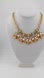 Vintage J. Crew necklace features sparkling crystals and a gold-tone metal chain with an adjustable clasp closure and extender. The centerpiece consists of five ornate clusters, each adorned with clear, faceted rhinestones and smaller, iridescent white stones. The metal exhibits some minor scuffing and slight discoloration. Unique and beautiful vintage piece from JCrew!