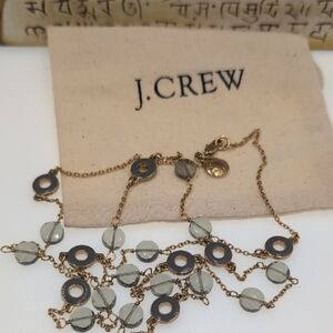 This J. Crew necklace showcases a harmonious blend of gold and gray tones, featuring a delicate design that exudes vintage charm. The lightweight piece is crafted to sit gracefully around the neckline, making it a versatile accessory for any occasion.
