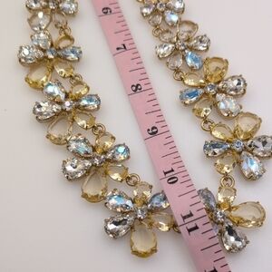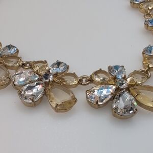 This exquisite J. Crew necklace combines gold and silver tones in a striking collar-style design. Adorned with sparkling crystals, it offers a glamorous touch to any formal ensemble.