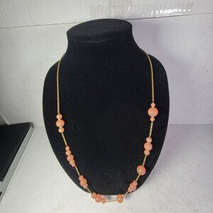 J. Crew Gold-Tone Chain Necklace With Peach Beads & Lobster Clasp