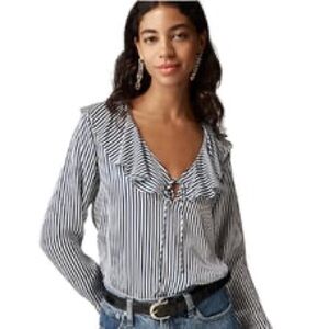 J Crew Goldie Satin Stripe Top Blouse Blue/White S(4-6) NWT Long Sleeve Crop