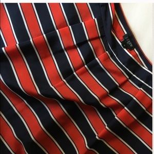 From factory. Two snags as pictured. Easy to dress up or down. Poly. Lined. Side zip. Pleated. Approximately 18" long.