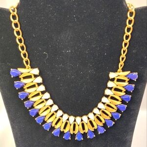 J. Crew Gorgeous Gold, Blue And White Statement Necklace