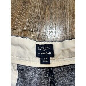 The J Crew Gramercy Shorts for men in size 33 are a stylish and lightweight option for the summer season. Made from a comfortable linen and cotton blend in a solid gray color, these chino style shorts feature a flat front design with a 9 inch inseam. Perfect for casual or travel occasions, these shorts are breathable and include pockets for added functionality. The classic and preppy theme of these shorts makes them a versatile and fashionable choice for men looking for a light and airy option for warm weather.