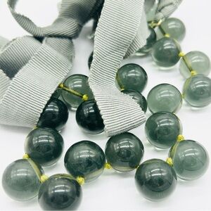 J. Crew Gray Beaded Ribbon Tie Necklace. Beads are translucent gray with a green undertone. Tie to desired length.