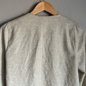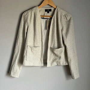 Elegant gray blazer by J. Crew. Features a sleek design with front pockets. Perfect for professional or casual wear.