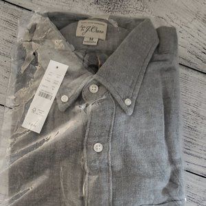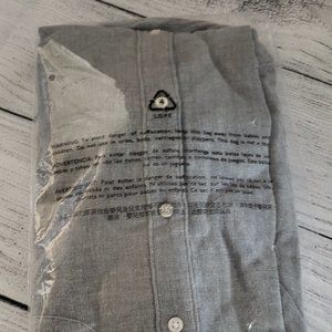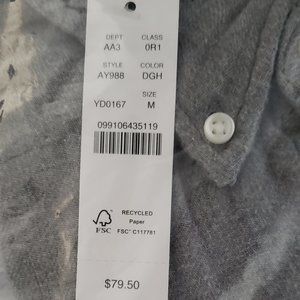 Stylish gray button-down shirt. Features plaid inner lining. Perfect for casual wear.