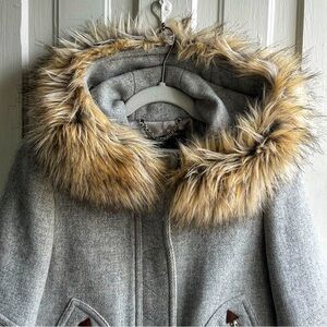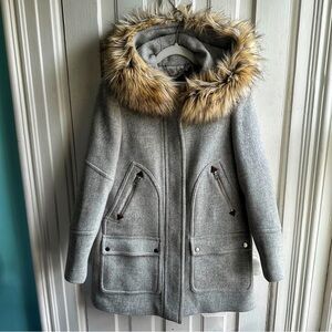 J. Crew Gray Coat with Faux Fur Hood Size 2