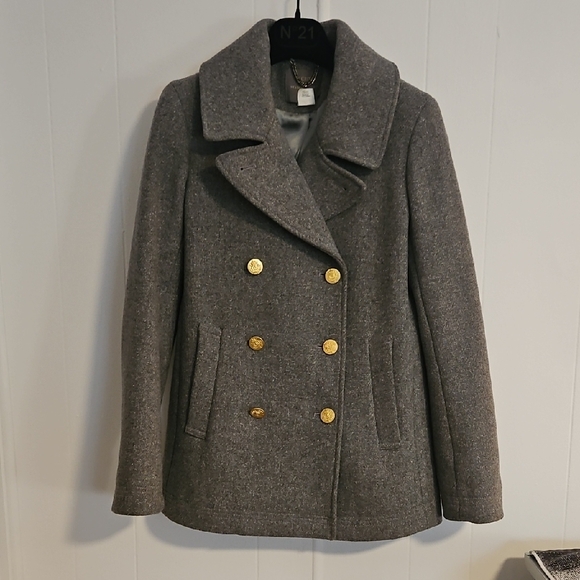 J Crew Gray Double-Breasted Wool Coat