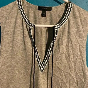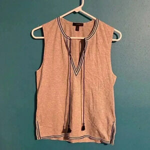 J. Crew Gray Embroidered Tasseled Sleeveless Tunic Tee Shirt