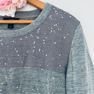 J. Crew Gray Glen Plaid Yoke Jeweled Sweater Wool Large