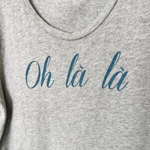 J. Crew Size XL Gray Oh La La Graphic Print Round Neck Short Sleeve T-Shirt