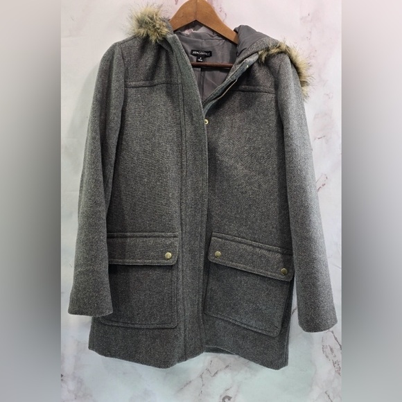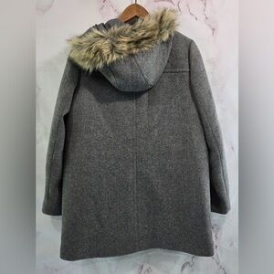 J. Crew Gray Pea Coat with Faux Fur Trim