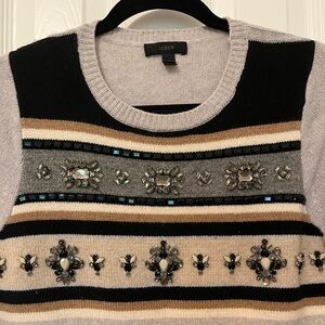 J. Crew Gray Rhinestone Crew Neck Sweater Size S.