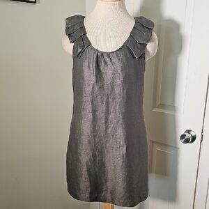 J. Crew Gray Ruched Ruffled Sheath Mini Dress. Size 4. 82 % LINEN 18% SILK.