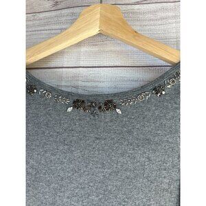 J. Crew Gray Sequin Trim Ribbed Tank Top Size Large