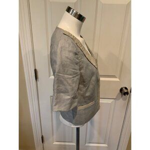 J. Crew Gray Short Sleeve Linen Jacket W/ Tan Gathered Neckline, Size 4