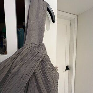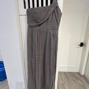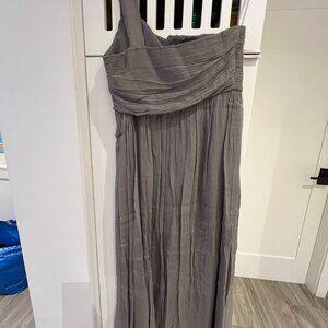J. Crew Gray Silk Chiffon Maxi Formal One Shoulder Petite Womens Dress Sz 12