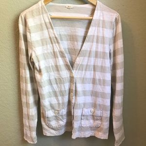 J. Crew Gray & White Striped Cardigan