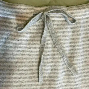 J. Crew Gray & White Striped, Size Small, Maxi, soft & fuzzy Sweater Skirt. Elastic waist with a tie. Good pre owned condition. Cute with boots or tennis shoes!