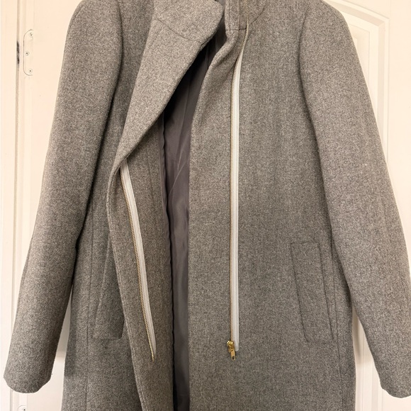 J Crew Gray Wool Coat with Gold Zipper