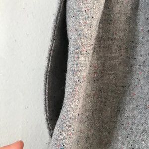 Cute transitional mini by J. Crew. Women's size 10 with elastic paperb ag style waistband. Light gray wool blend with slight multicolor slub. Lined. Pockets. In good condition, no signs of wear.