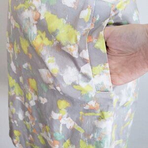 J Crew Gray & Yellow Brushstroke Cotton Mini Skirt with Pockets