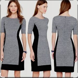 Chic mini dress with a gray and black color block design. Perfect for stylish outings. Flattering fit and modern look.