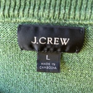 J. Crew Green 100% Cotton Crewneck Sweater In Garter Stitch Size Large