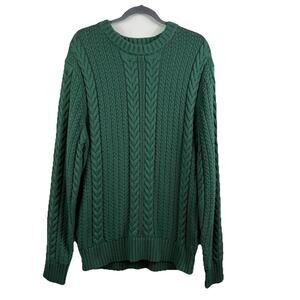 The J Crew Green 100% Cotton Hand Knitted Cable Knit Sweater in Men’s XL is a classic and stylish pullover garment perfect for casual occasions.