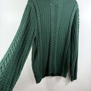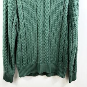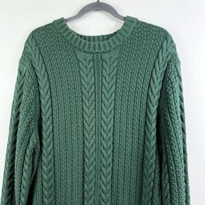 J Crew Green 100% Cotton Hand Knitted Cable Knit Sweater Men’s XL Fisherman