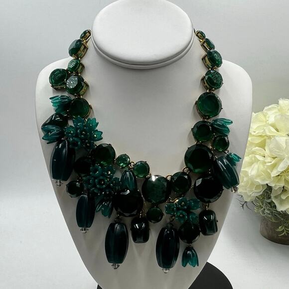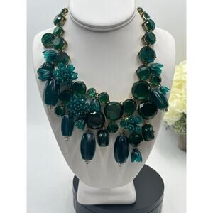 J. Crew Green Bauble Glass Resin Flower Cluster Bib Runway Gold Ox Necklace