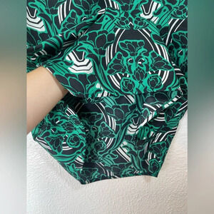 J. Crew Green Black Retro Floral Popover Blouse Top Women’s 2 Summer Business