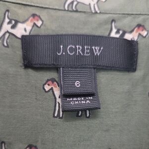 Stylish green blouse with playful dog print. Long sleeves and button-up front. Perfect for casual wear.