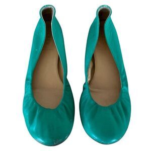 Green J. Crew Cece ballet flats with hidden 1” lift.  Italian soft leather with blemishes as shown. Very comfortable with elastic toe box for the best fit. Soles are hard flexible rubber. Made in Italy. 9.5